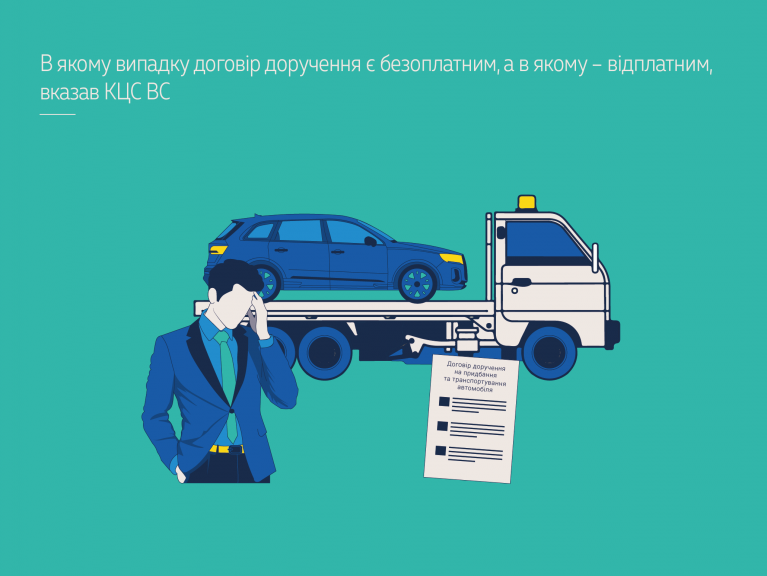 КЦС ВС звернув увагу на те, що сума коштів у розмірі плати за транспортний засіб та його транспортування не є платою повіреного, тому не може вважатися загальною вартістю замовлення в розумінні ч. 5 ст. 10 Закону України «Про захист прав споживачів». Оскільки розмір плати повіреного в укладеному між сторонами договорі доручення не встановлений, він має визначатися з урахуванням того інструментарію (спосіб визначення плати), що міститься в згаданих вище нормах цивільного законодавства.