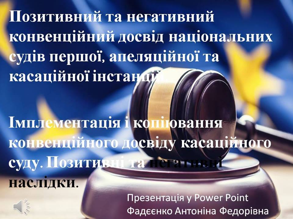 Суддею апеляційного суду Одеської області у відставці, тренером національної школи суддів України - Антоніною Фадєєнко запропонована презентація у POWER POINT: